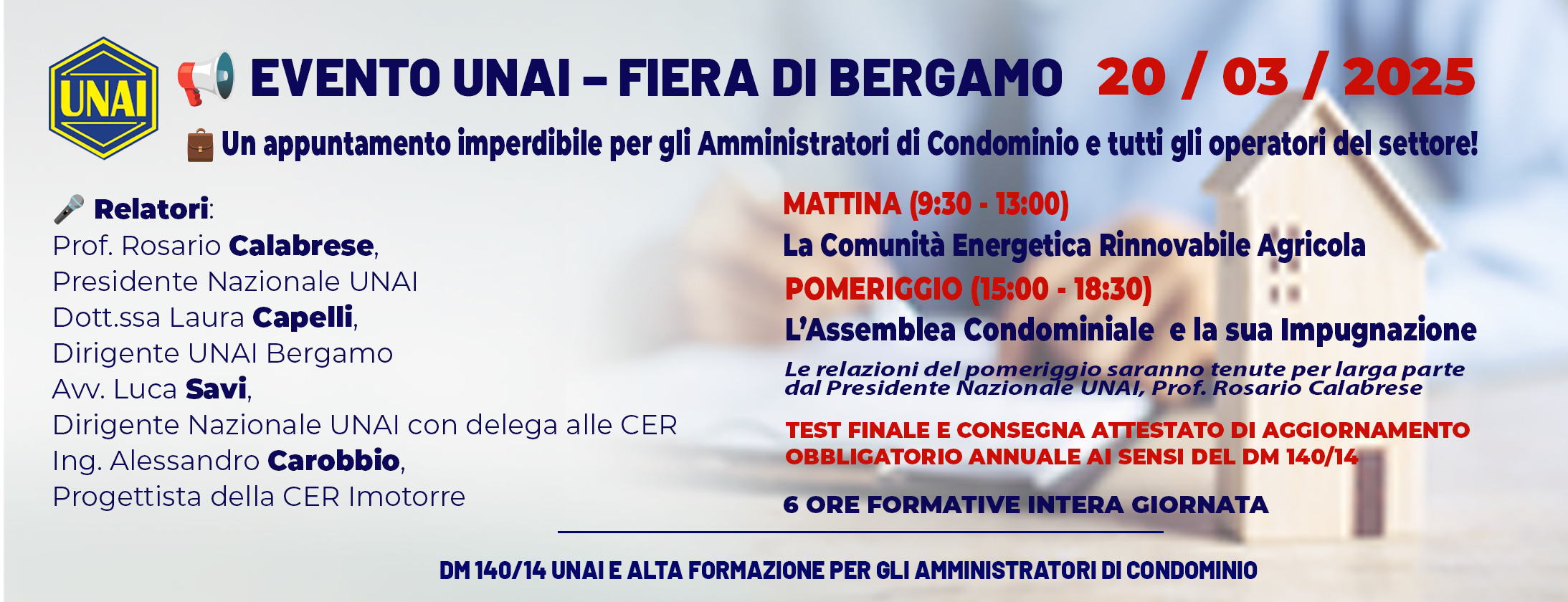 ???? Il 20 marzo alla Fiera di Bergamo, UNAI offre un'opportunità esclusiva per completare la formazione annuale obbligatoria